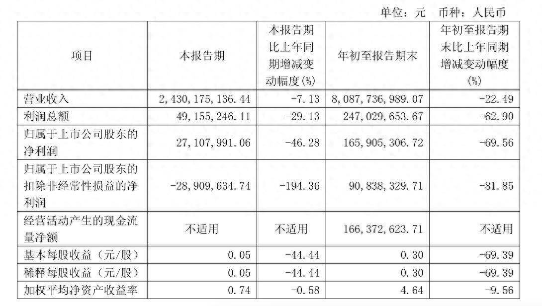 第三季度单季,太极集团买卖收入为24.3亿元,同比下落7.13%;包摄于上市公司推动的净利润为2710.8万元,同比下落46.28%;扣非净利润为-2890.96万元,同比暴跌194.36%。